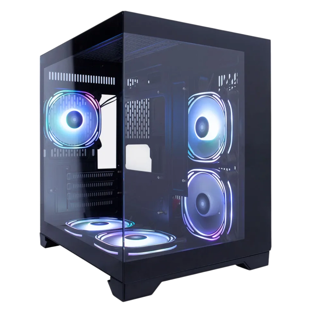 | Alte caracteristici carcasă | Filtre pentru praf Panou lateral și frontal din sticlă securizată Iluminare ARGB + telecomandă RF 5 x ventilatoare incluse 2 x USB 3.0, 1 x HD Audio |