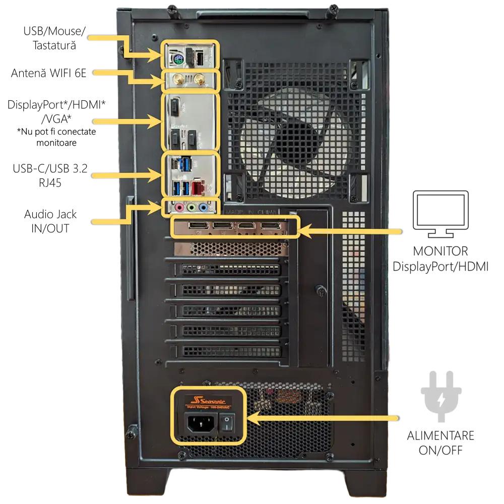 Specificațiile componentelor corespund datelor tehnice din documentația elaborată de producător. Toate componentele sunt furnizate de distribuitori autorizați, însoțite de factura de achiziție, certificat de garanție și includ accesoriile oferite de producător. Acestea pot include și nu se limitează la: telecomenzi RF, cabluri SATA, cabluri de alimentare, antene WIFI, etc.