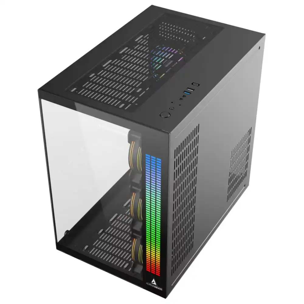 | Alte caracteristici carcasă | Filtre pentru praf Sticlă securizată Iluminare ARGB (controller + telecomandă RF) 4 x ventilatoare 1 x USB 3.0, 1 x USB Type-C, 1 x USB 2.0, 2 x HD Audio |